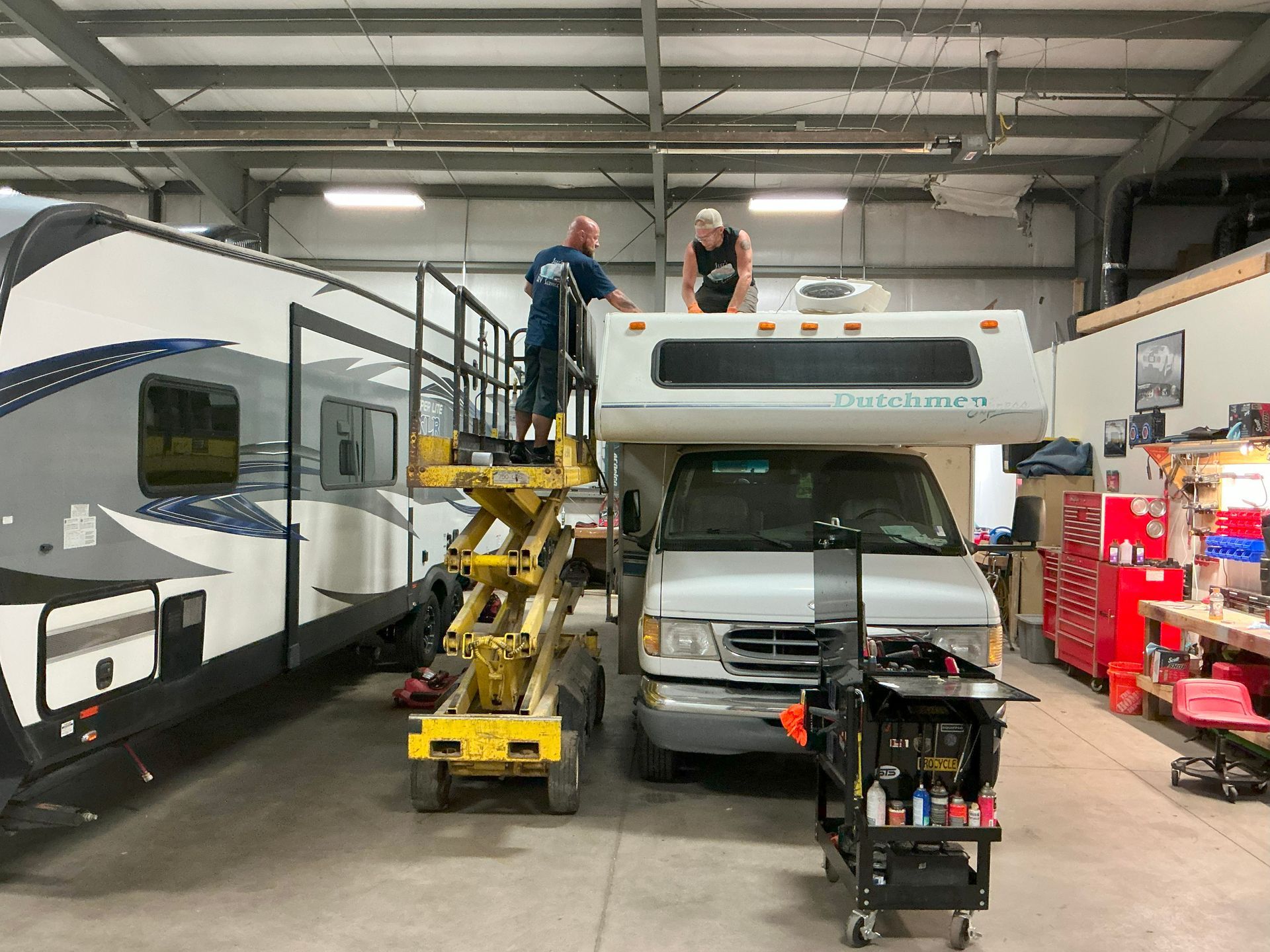 Winterizing – Plumbing Repair – Electrical Repair – Water Heater Service – Furnace Repair – Roof Leaks – Roof Reseal – Slide-Out Repair – Awning Repair – RV Appliance Repair
